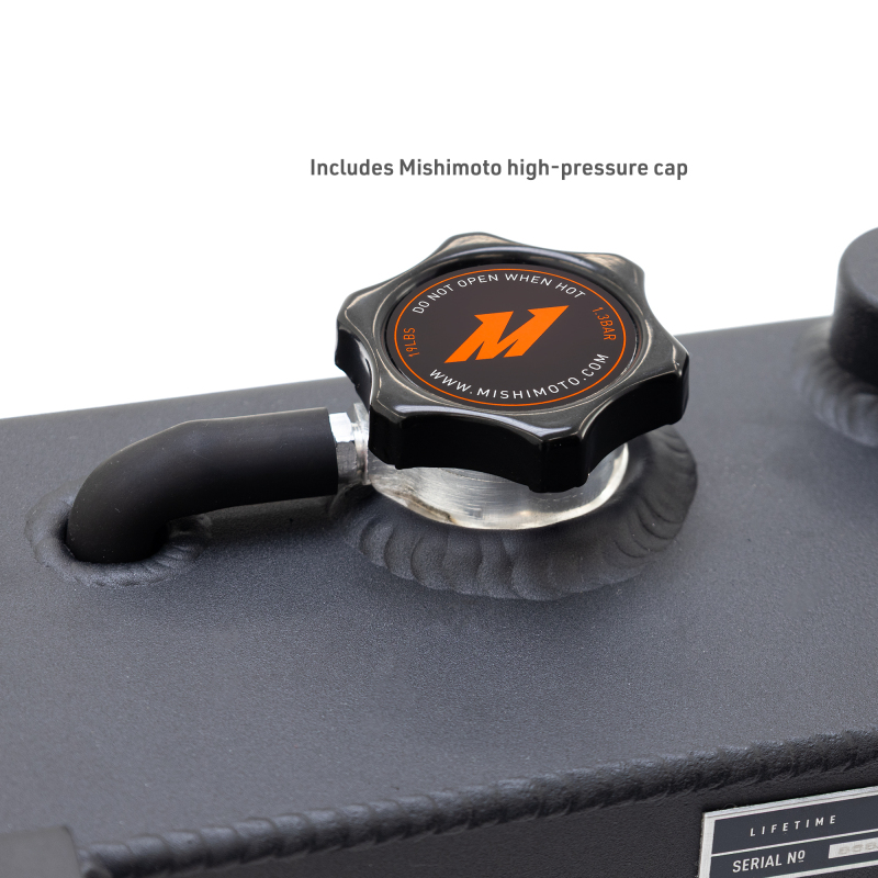Installation is straightforward and can be completed before your next trip, making it an ideal upgrade for Jeep enthusiasts seeking reliability and performance. Included with the tank is a Mishimoto radiator cap, and the product is backed by a lifetime warranty, ensuring long-term durability. Whether for daily driving or off-road adventures, this aluminum expansion tank is a reliable upgrade that improves coolant capacity, reduces aeration, and enhances overall engine cooling efficiency in your Jeep Wrangler JL or Gladiator JT.
