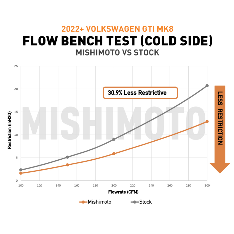 Upgrade your Volkswagen GTI MK8 with the Mishimoto Intercooler Pipe Kit, designed to enhance airflow and boost performance. Crafted from durable, mandrel-bent aluminum, these pipes deliver a significant 30.9% increase in airflow by reducing restrictive bends and increasing diameter to 2.75 inches, allowing your turbo to breathe more freely. The kit includes heat-resistant, five-layer silicone couplers that ensure a secure, long-lasting connection between the intercooler and piping, minimizing the risk of leaks or degradation over time. This upgrade is ideal for enthusiasts looking to improve throttle response and overall engine efficiency while maintaining reliability.