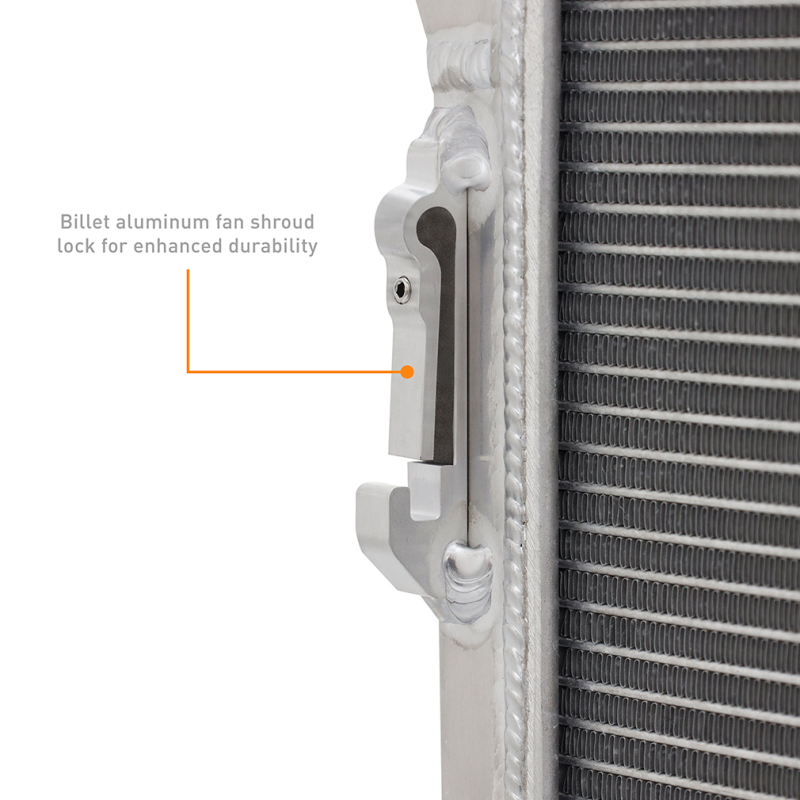- Billet aluminum fan shroud lock and thicker mounting points for enhanced stability