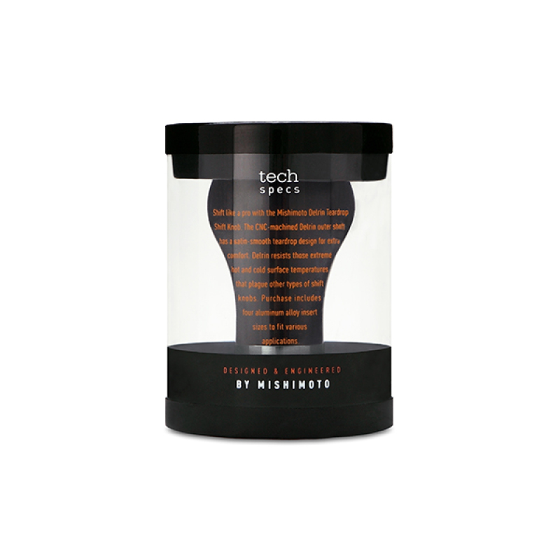 Enhance your vehicle’s interior with the Mishimoto Teardrop Shift Knob, designed to deliver both style and performance. Featuring a unique 2-piece hybrid construction, this shift knob combines a CNC-machined 303 billet stainless steel core with a durable thermoplastic outer shell. The stainless steel core adds weight for a more precise and confident shift feel, while the thermoplastic shell provides excellent protection against extreme surface temperatures, ensuring comfort in both hot and cold climates. The sleek teardrop shape offers ergonomic handling and a modern aesthetic that complements various interior styles. Available in classic black or white, this shift knob allows you to customize your vehicle’s look effortlessly. Weighing approximately 10.4 ounces, it offers a substantial feel that enhances driving confidence and shift accuracy. The design includes a plastic insert with three set screws for secure fitment onto unthreaded shift levers, along with four threaded plastic inserts to accommodate a wide range of vehicle models, ensuring compatibility and an easy installation process. The Mishimoto Teardrop Shift Knob not only upgrades your interior’s appearance but also improves your driving experience with its thoughtfully engineered construction. Whether you’re customizing your ride or seeking a reliable replacement, this shift knob provides a seamless blend of durability, style, and precise shifting performance for any enthusiast or daily driver. Its construction adheres to strict safety and quality standards, supported by Prop 65 compliance, making it a trusted choice for automotive upgrades.