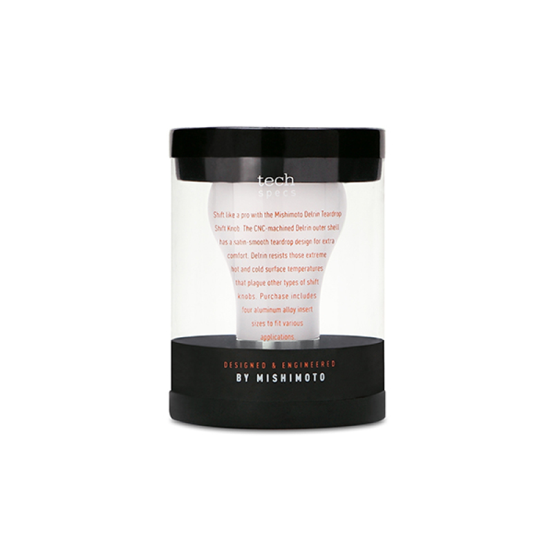 Upgrade your vehicle’s interior with the Mishimoto Teardrop Shift Knob, designed to enhance shifting precision and style. Featuring a 2-piece hybrid construction, this shift knob combines a CNC-machined 303 billet stainless steel core for added weight and a smooth, precise shift feel, with a thermoplastic outer shell that offers protection against extreme surface temperatures. Available in a sleek white finish, it seamlessly complements a variety of interior color schemes and adds a modern touch to your vehicle. The robust design ensures durability and consistent performance regardless of weather conditions, making it ideal for both hot summer days and cold winter nights. The shift knob weighs approximately 10.4 ounces, providing a substantial feel that improves gear engagement and driving confidence. Its versatile fitment options include a plastic insert with three set screws for unthreaded shift levers and four threaded inserts to accommodate different vehicle models. Installation is straightforward, allowing for a secure fit on various shifter types without the need for additional modifications. Constructed with high-quality materials and CNC-machined for precision, this Mishimoto shift knob is a practical upgrade for automotive enthusiasts seeking both form and function in their vehicle’s interior accessories.