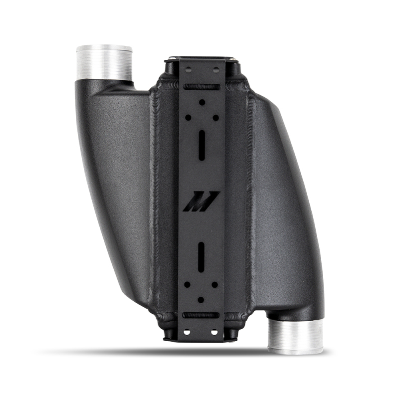 Constructed with a durable bar-and-plate core and 5mm-thick cast-aluminum end tanks, this intercooler provides excellent airflow and cooling efficiency. The custom-engineered end tanks are CNC-machined for optimal aerodynamics and feature ribbed inlet and outlet coupler connections, ensuring maximum grip and minimal slippage during installation. Its TIG-welded core withstands boost pressures of up to 100 psi, making it suitable for high-boost applications. The sleek, micro wrinkle black powder coat finish not only enhances its appearance but also offers corrosion resistance for long-term durability.
