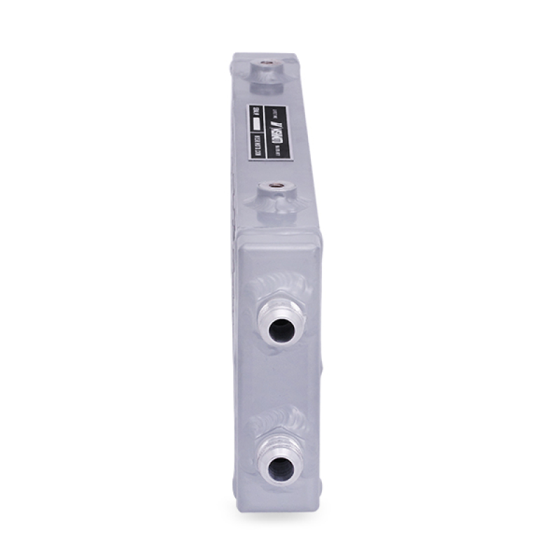 The dual pass core design allows oil to enter one side of the cooler, circulate around the core, and exit on the same side, providing efficient heat transfer and temperature reduction. This feature helps keep oil temperatures in check, especially during high-stress track days or spirited driving, thereby reducing the risk of overheating and related engine issues. The cooler is equipped with M8x1.25 welded bungs, facilitating straightforward attachment of brackets or mounting hardware, which simplifies installation in a variety of custom setups.