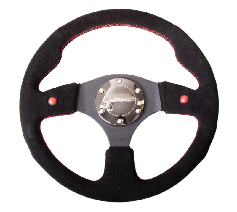 Enhance your vehicle’s performance and style with the NRG Reinforced Steering Wheel, featuring a 12.6-inch diameter black suede grip that offers excellent comfort and control. Crafted from high-quality materials, this steering wheel is designed to provide durability and a premium feel during every drive. The reinforced construction ensures long-lasting strength, making it suitable for both street and performance applications. The dual button design allows for easy integration of additional controls, improving functionality without compromising aesthetics.