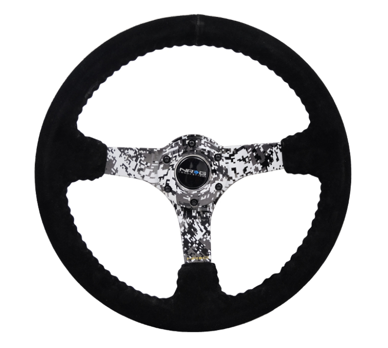 Enhance your vehicle’s interior with the NRG Reinforced Steering Wheel, featuring a 350mm diameter and a 3-inch deep dish design for optimal grip and control. Crafted from high-quality black suede, this steering wheel provides a comfortable and secure feel during spirited driving. The hydrodipped digi-camo spokes add a distinctive and rugged aesthetic, making it an excellent choice for enthusiasts seeking both style and performance. Designed for durability, the reinforced construction ensures long-lasting reliability on the road or track.