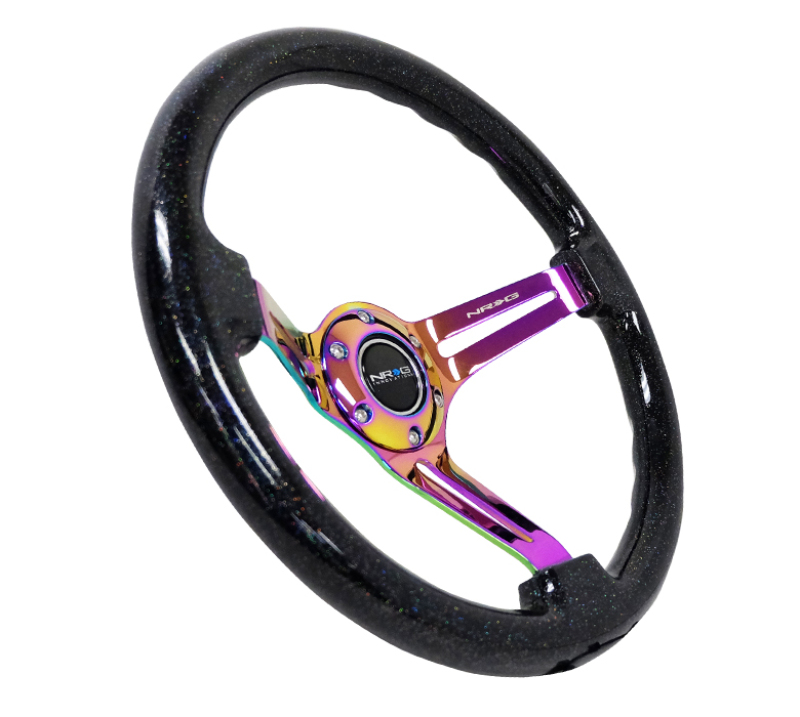 Enhance your vehicle’s interior with the NRG Reinforced Steering Wheel, featuring a 350mm diameter and a 3-inch deep dish design for superior control and a sporty feel. Constructed with high-strength reinforcement, this steering wheel offers durability and a confident grip during spirited driving. The eye-catching multi-color flake finish adds a vibrant, customized appearance to your steering setup, making it an ideal choice for automotive enthusiasts seeking both style and performance. The Neochrome center mark provides clear orientation at a glance, ensuring correct wheel positioning every time.