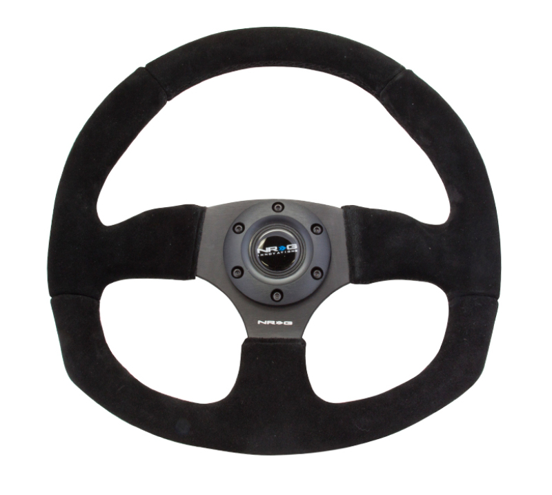 Enhance your vehicle’s interior with the NRG Reinforced Steering Wheel, featuring a 320mm diameter horizontally and a 330mm vertical dimension. Crafted from durable materials, this steering wheel provides improved grip and control for a confident driving experience. The black suede wrapping offers a refined look and a comfortable feel, while the black stitching adds a subtle aesthetic touch. Designed for compatibility with a range of automotive applications, this steering wheel combines style and functionality seamlessly.