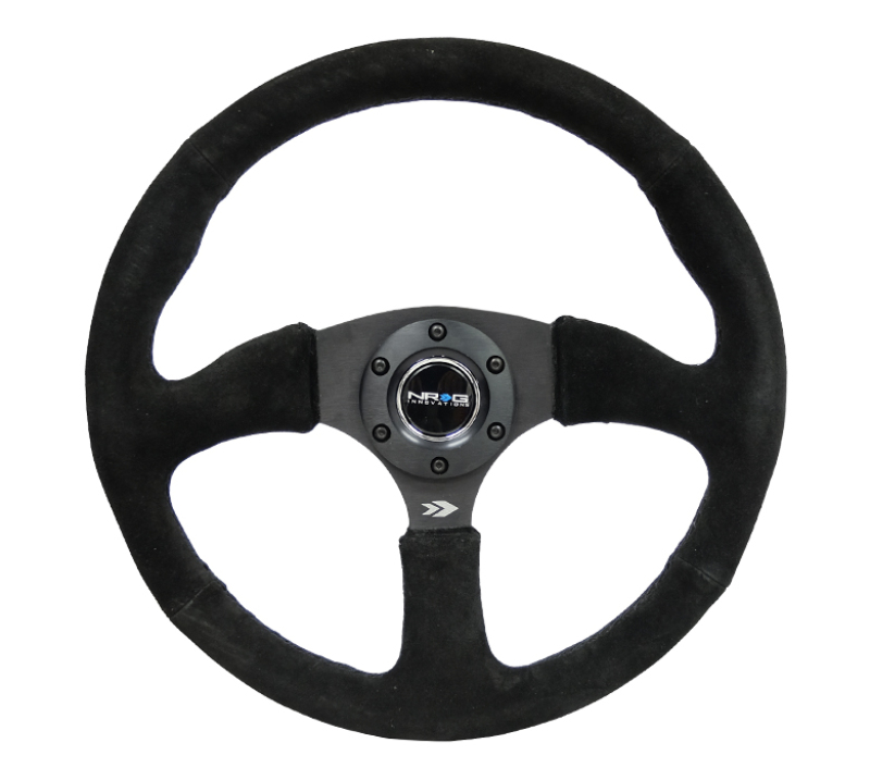 Enhance your vehicle’s interior with the NRG Reinforced Steering Wheel, featuring a 350mm diameter and a 2.5-inch deep dish for optimal control and comfort. Crafted with a black suede cover, this steering wheel provides a superior grip that reduces fatigue during extended driving sessions. The comfort grip design ensures precise handling and a confident driving experience. The wheel is reinforced for durability and features five matte black spokes that complement its sleek aesthetic, making it suitable for a variety of automotive applications. Its lightweight construction ensures responsive steering without sacrificing strength, making it an ideal upgrade for enthusiasts seeking both style and functionality. Whether upgrading your daily driver or customizing a racing vehicle, this steering wheel combines performance with a modern, refined appearance. Easy to install and compatible with most standard steering column setups, the NRG RST-023MB-S is a reliable choice for automotive enthusiasts looking to improve their driving experience while maintaining a clean, aggressive look.