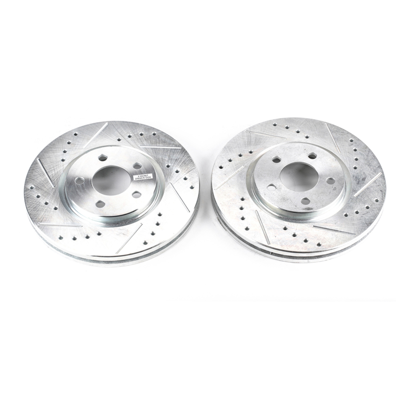 Upgrade your vehicle’s braking system with the PowerStop Part Number AR8352XPR Evolution drilled and slotted rotors, specifically designed for 2003-2009 Chrysler PT Cruiser models. These rotors offer a direct OE fit, ensuring installation without modifications and providing a reliable enhancement over stock components. Constructed with precision tolerances, they deliver smooth, quiet performance while maintaining optimal safety and durability. The rotors feature cross-drilled holes that maximize cooling during intense driving conditions, preventing overheating and brake fade. Rounded slots effectively sweep away gases, dust, and moisture from the friction surface, maintaining a clean contact patch for consistent braking response. The zinc dichromate plating not only enhances corrosion resistance but also extends the lifespan of the rotors, making them suitable for various environmental conditions. Designed to match the original weight and vane count, these rotors incorporate chamfered drill holes and rounded slots to reduce stress cracking and enhance durability during demanding driving scenarios. Sold as a pair, they are ideal for replacement or upgrading your vehicle’s braking system, providing improved performance, longevity, and safety. These rotors are engineered to meet strict manufacturing standards, ensuring balanced operation and reduced vibration for a comfortable driving experience. Whether you’re seeking better heat dissipation or a more aggressive braking response, the PowerStop Evolution drilled and slotted rotors offer a high-quality, bolt-on upgrade for your Chrysler PT Cruiser.