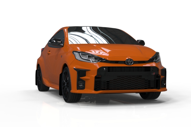 With a sleek black finish and a white logo accent, the Rally Armor mud flaps add a stylish touch while providing essential protection. Their durable polyurethane material maintains its form and function throughout the vehicle’s lifespan, resisting the steady wear that often affects vinyl and rubber alternatives. These mud flaps are an excellent upgrade for Toyota GR Yaris owners seeking reliable, all-weather protection that combines durability with a clean, professional look.