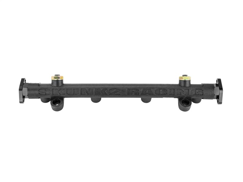Upgrade your Mitsubishi Evo VIII-IX with the Skunk2 Racing Composite High Volume Fuel Rail, part number 350-06-5100. Crafted from a proprietary carbon-impregnated, aerospace thermo-polymer composite, this fuel rail is designed to be 33% lighter and 60% stronger than traditional aluminum counterparts. Its advanced material technology allows it to operate up to 100 degrees Fahrenheit cooler, providing enhanced thermal insulation that helps maintain fuel temperature and consistency under demanding conditions. This reduction in heat transfer minimizes fuel vaporization and improves overall engine performance, resulting in increased horsepower and torque potential. The robust construction supports high horsepower applications, up to 1,200 hp, making it an ideal upgrade for high-performance builds.