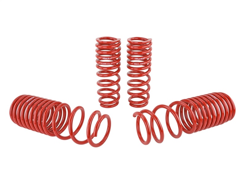 The springs feature high-quality CNC-wound SAE 9254V spring steel, ensuring durability and consistent performance under demanding conditions. Shot-peen stress relief treatment enhances fatigue life, while powdercoating and phosphate processes provide excellent corrosion resistance, making them suitable for various environments. The spring rates are optimized to reduce body roll and squat, giving you sharper cornering grip and more controlled acceleration and braking responses. These springs are compatible with OEM and aftermarket shock absorbers and look great on stock or aftermarket wheels, making them a versatile upgrade.