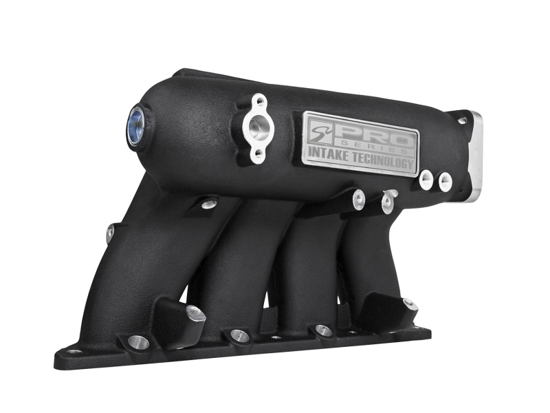 The Skunk2 Racing Pro Series Mitsubishi Evo VIII/IX Black Series Intake Manifold is a high-performance upgrade designed for street-driven Evo owners seeking increased power without sacrificing mid-range torque. Crafted from durable cast aluminum, this direct-fit replacement features OEM-length runners with larger bores and a tapered plenum, optimizing airflow for gains across the entire RPM range. Tested and developed on Skunk2’s own Evo Time Attack race car, it delivers significant horsepower and torque improvements, with peak gains of over 33 wheel horsepower when paired with Pro Series Throttle Bodies. The larger, tapered plenum and tapered runners work together to enhance wave scavenging effects, resulting in a broad increase in usable power from as low as 3,200 rpm through the high end, making it ideal for demanding street and track applications. The intake manifold’s thicker castings allow for optional porting, enabling further customization and performance tuning. Each runner exit is machined and hand-finished to match the cylinder head’s ports precisely, ensuring optimal airflow and efficiency. The design preserves the factory throttle body location, allowing for easy installation and compatibility with existing intercooler piping, hoses, and vacuum accessories, including provisions for the brake booster line and MDP sensor. This manifold also includes a dipstick relocator for proper fitment and features NPT threaded vacuum ports for added versatility. Finished in a sleek black Series coating, the Pro Series Intake Manifold not only boosts performance but also adds a refined aesthetic to your engine bay. Whether upgrading for daily driving or competitive racing, the Skunk2 Pro Series Intake Manifold provides a straightforward bolt-on solution that enhances airflow, power, and engine efficiency without compromising mid-range response. Designed for Mitsubishi Lancer models from 2003 to 2006, this component is an essential upgrade for serious enthusiasts aiming to maximize their Evo’s potential.