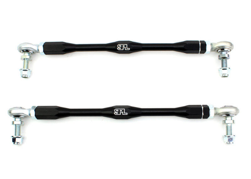 Enhance your BMW E9X or E8X chassis with the SPL Parts adjustable front sway bar endlinks, designed specifically for M models from 2008 to 2013. Crafted in the USA, these endlinks feature massive PTFE-lined FK 1/2″ bearings that deliver exceptional load capacity for use with stiffer aftermarket sway bars, improving handling and stability during aggressive driving. The high misalignment chromoly studs allow for up to 65° of articulation, preventing binding even when different adjustment holes are used on aftermarket sway bars, ensuring smooth operation and reliable performance.