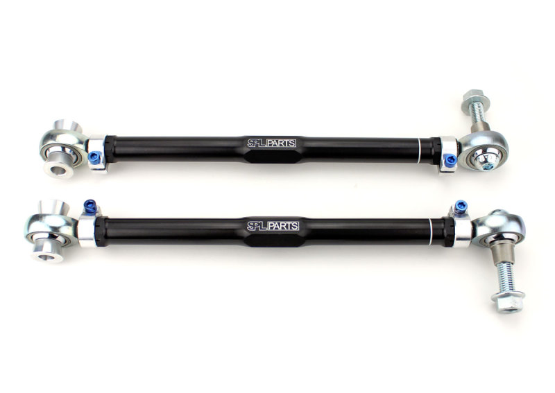 The SPL Parts Porsche 981 Boxster and Cayman Rear Adjustable Toe Arms are designed to improve vehicle stability and responsiveness by eliminating bushing deflection. Engineered for high-performance street and race applications, these toe arms provide a wide range of toe and bump steer adjustments, which are especially beneficial when lowering your vehicle. Factory links often cause excessive toe-in after lowering, leading to handling issues and uneven tire wear. By replacing these with the SPL adjustable arms, drivers can fine-tune their alignment for optimal performance and tire longevity. Constructed with precision and durability in mind, these arms are proudly made, engineered, and assembled in the USA, ensuring high quality and reliable performance. Installation allows for a more aggressive stance while maintaining precise control over toe angles, resulting in improved cornering, steering response, and reduced tire wear. Whether you’re upgrading your street car or preparing for competitive racing, these rear toe arms offer a valuable solution for enhanced vehicle handling. Compatible with 2013-2015 Porsche Boxster and Cayman models, they are built to fit seamlessly into your vehicle’s suspension system, delivering both performance and confidence on the road or track.