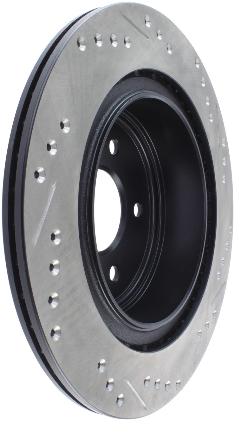 Upgrade your vehicle’s braking system with the StopTech 127.42088R SportStop Drilled and Slotted Rear Rotor, designed specifically for select Nissan 350Z and Infiniti G35 models. This high-performance, one-piece rotor directly replaces factory discs, ensuring compatibility and a seamless fit. Its unique cross-drilling and slotting facilitate effective heat and brake dust dispersal, reducing brake fade and maintaining consistent stopping power under demanding conditions. The visually appealing black e-coating not only enhances the rotor’s appearance but also provides superior corrosion protection, extending the lifespan of your braking components. Constructed with high carbon metallurgy, this rotor offers quieter operation, increased crack resistance, and improved performance in both dry and wet conditions. The advanced metallurgy, including added Molybdenum and Chromium, further resists cracking from thermal stress, making it a durable choice for spirited driving or daily commuting. Features like double disk grinding ensure a consistent friction surface, while the directional curve vane designs improve gas and heat evacuation, optimizing braking response. The increased initial bite and enhanced wet weather response help deliver confident stopping power in all conditions. As a direct OE replacement, this rotor is suitable for a range of models from 2005 through 2013, including the Infiniti G35, G37, M35, M45, Q40, and various Nissan models, offering an ideal upgrade for enthusiasts seeking improved braking performance and reliability. Built to meet high standards, the StopTech SportStop rotor combines innovative design, durable materials, and corrosion resistance to ensure your vehicle maintains optimal stopping power and safety over time.