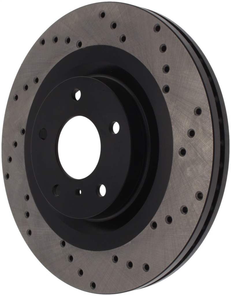 Enhance your vehicle’s braking performance with the StopTech 128.42080L Drilled Sport Rotor, designed as a direct replacement for factory brake discs on select Infiniti and Nissan models. Crafted from high-quality metallurgy, this one-piece rotor features advanced materials such as added molybdenum and chromium, which provide superior crack resistance and quieter operation. The black e-coating offers excellent corrosion protection, ensuring durability even in harsh driving conditions. Its unique cross-drilling aids in heat dissipation, brake dust removal, and gas venting, resulting in increased bite and improved wet and dry braking performance. These features make it especially effective when paired with higher friction, European-style brake pad compounds, delivering consistent and reliable braking power. Built to meet the demands of spirited driving and daily use, the rotor’s double disk ground surface guarantees a smooth and uniform friction surface, reducing noise and pad squeal. Designed for specific Infiniti and Nissan models from 2003 through 2019, this rotor is a perfect upgrade for those seeking enhanced braking capability and a sportier appearance. The directional curve vane design (on selected applications) further improves heat management, extending rotor life and maintaining optimal brake performance. This rotor is a direct OE replacement, ensuring a perfect fit and easy installation for your vehicle. Whether you’re upgrading for performance or longevity, the StopTech Sport Rotor provides a reliable solution to improve your vehicle’s braking system with advanced features and durable construction.