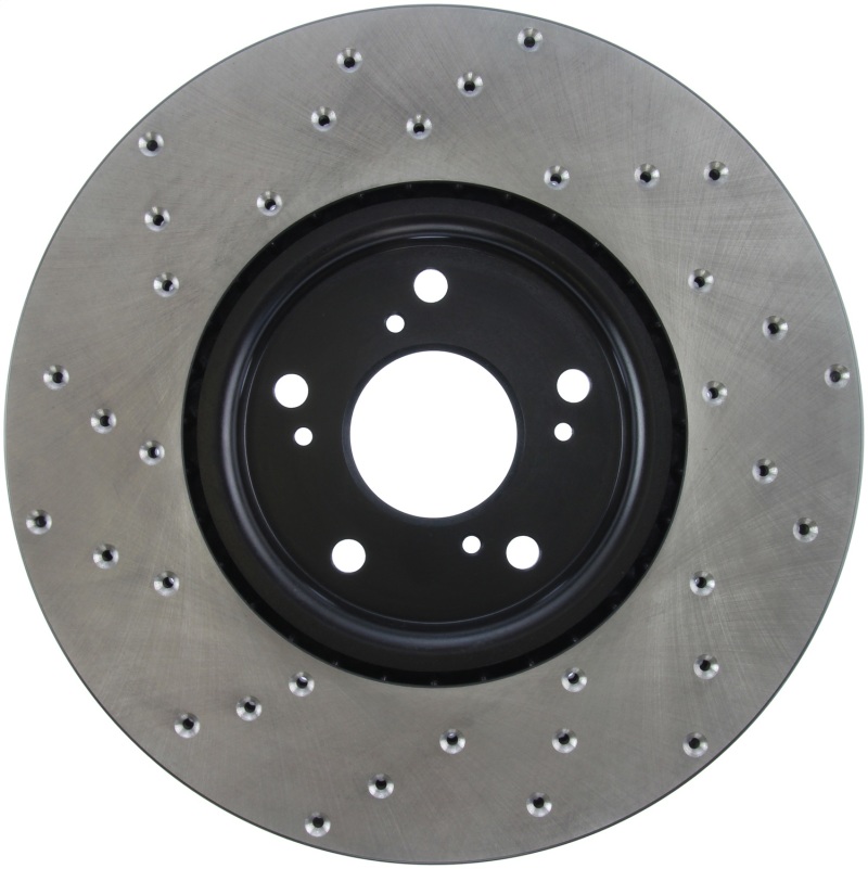 Upgrade your Acura TL with the StopTech Part Number 128.40062L drilled sport rotor, designed to deliver superior stopping power and longevity. These high-performance, one-piece brake discs are direct replacements for your factory rotors, ensuring a seamless fit with your existing brake system and stock calipers. The unique cross-drilling pattern facilitates effective heat dissipation, brake dust removal, and gasses escape, which enhances braking response in both wet and dry conditions. This feature not only improves initial bite but also reduces the risk of brake fade during demanding driving situations. The rotors are constructed with advanced high carbon metallurgy, which offers quieter operation, increased crack resistance, and better thermal stress handling, making them a reliable choice for spirited driving or everyday use. The black e-coating provides corrosion resistance, preserving the rotor’s appearance and functionality over time. These drilled rotors are especially effective when paired with higher friction European style brake pads, providing improved braking feedback and reduced pad squeal. Their superior resistance to cracking, combined with the added molybdenum and chromium content, ensures durability even under thermal stress. Designed specifically for Acura TL models from 2004 to 2008, these rotors feature double disk grinding for a consistent friction surface and are engineered with directional curve vane designs on certain applications for optimal heat management. Installation is straightforward as they serve as direct OE replacements, allowing you to restore or upgrade your vehicle’s braking system with confidence.