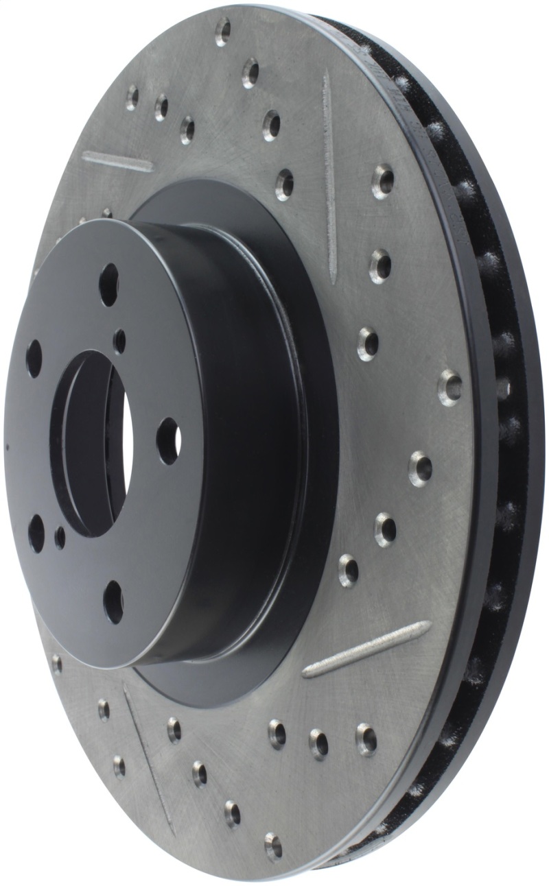 Upgrade your vehicle’s braking system with the StopTech Part 127.47012L Slotted & Drilled Sport Brake Rotor, designed to deliver exceptional stopping power and durability. Crafted from high carbon metallurgy with advanced corrosion-resistant e-coating, these rotors are engineered to withstand the demands of spirited driving and harsh conditions. The black e-coating not only provides corrosion protection but also enhances the rotor’s appearance behind your wheels. Featuring a one-piece construction, these rotors are direct replacements for factory brake discs on select Subaru, Scion FR-S, and Subaru BRZ models, ensuring a perfect fit and seamless installation.
