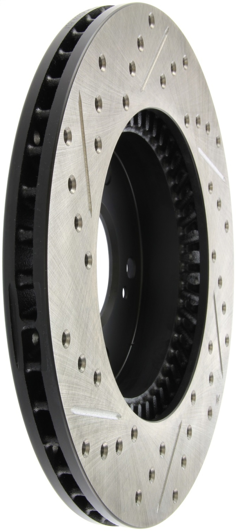 Upgrade your vehicle’s braking system with the StopTech Part Number 127.40026L drilled and slotted sport rotor, designed for 1997-2001 Honda Prelude and compatible Acura models. Crafted from high-quality, high-carbon metallurgy, this rotor offers superior durability and resistance to cracking caused by thermal stress. The black e-coating provides excellent corrosion protection, ensuring longevity and maintaining its appearance over time. The rotor’s advanced design features cross-drilling and slotting that effectively disperse heat, brake dust, and gases, resulting in improved braking response and reduced pad glazing. Such features contribute to better initial bite, enhanced wet weather performance, and overall braking efficiency. Built as a direct replacement for factory brake discs, it seamlessly fits your OEM calipers and enhances your vehicle’s braking performance without the need for modifications. The rotor’s unique directional curve vane design on selected applications optimizes airflow and cooling, making it especially effective during aggressive driving or heavy braking conditions. Additionally, the rotor’s construction reduces brake squeal, providing a quieter, more comfortable driving experience. Suitable for a range of Honda and Acura vehicles from the late 1990s to early 2000s, this rotor combines improved performance with robust construction, making it ideal for enthusiasts seeking both style and functionality.