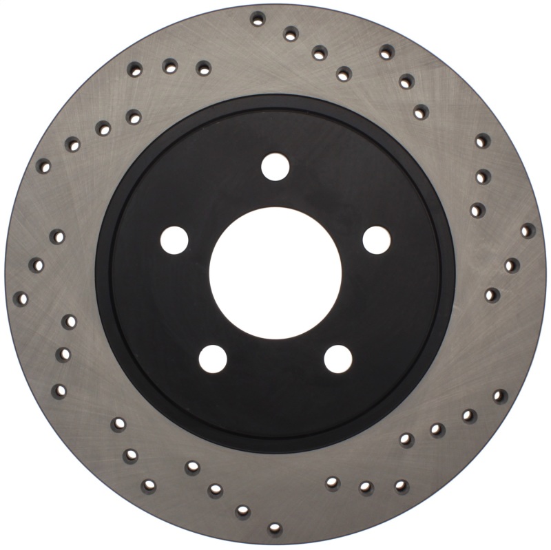 Upgrade your Ford Mustang’s braking system with the StopTech Part Number 128.61087L Cross Drilled Rear Left Rotor. Designed as a direct replacement for the factory brake discs, these rotors combine enhanced performance with a sleek appearance. The cross-drilled design improves heat dissipation and brake dust removal, resulting in more consistent braking during aggressive driving or in wet conditions. The black e-coating provides excellent corrosion resistance, ensuring longevity and a clean look even after exposure to harsh elements. Crafted from high carbon metallurgy, these rotors offer superior crack resistance and quieter operation, making them well-suited for spirited driving and daily use alike. They are especially effective when paired with higher friction European-style brake pad compounds, delivering increased initial bite and better wet weather response. These rotors also feature molybdenum and chromium additives to further resist cracking and thermal stress, ensuring durability over time.