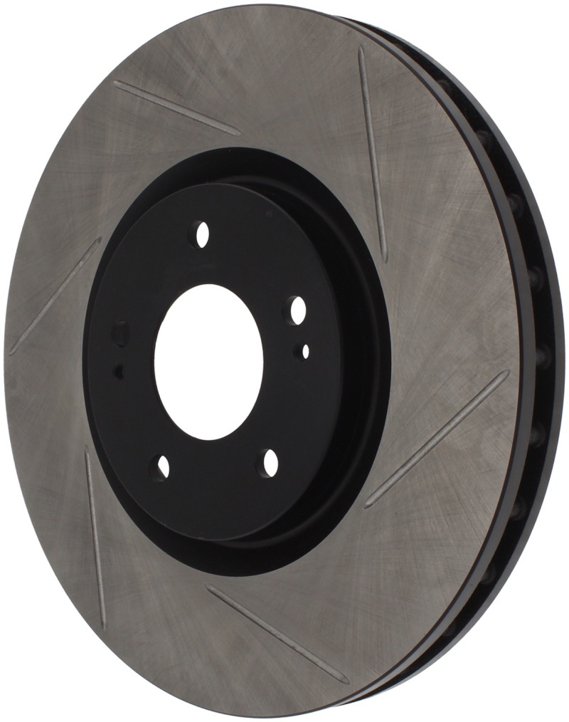 Upgrade your Mitsubishi Lancer with the StopTech Power Slot 03-06 Evo 8 & 9 Front Left Rotor, designed to deliver exceptional braking performance and durability. Crafted with advanced metallurgy and finished with a durable black e-coating, this rotor provides corrosion resistance and quieter operation, making it a reliable replacement for factory brake discs. The high carbon content in most applications enhances crack resistance and heat dissipation, ensuring consistent braking even under demanding conditions. Its unique slotting pattern aids in heat and brake dust dispersal, reducing glazing and improving overall brake response in both wet and dry conditions. This rotor also features a double disk ground surface for a smooth, consistent friction surface and directional curve vane designs on selected models to optimize thermal management. Engineered to be a direct OE replacement, it offers an easy installation process with significant performance benefits. The slots help evacuate gasses, dust, and heat, preventing brake fade and maintaining optimal contact between pad and rotor during aggressive driving or stop-and-go traffic. Ideal for enthusiasts seeking improved initial bite, enhanced wet weather response, and a sleek appearance behind their wheels, the StopTech Power Slot rotor combines durability, performance, and style in one package.