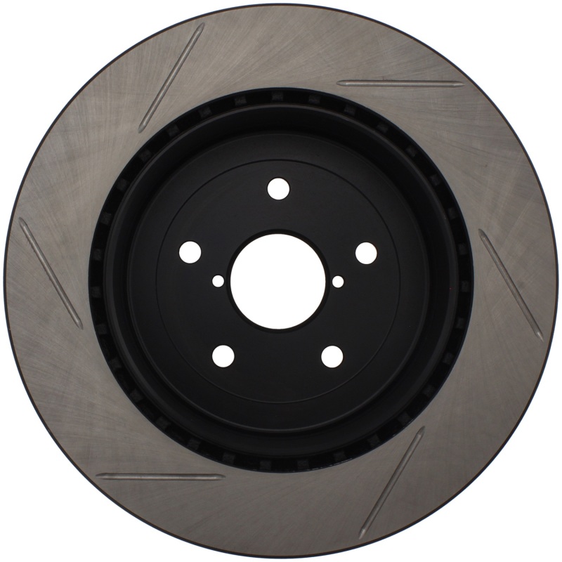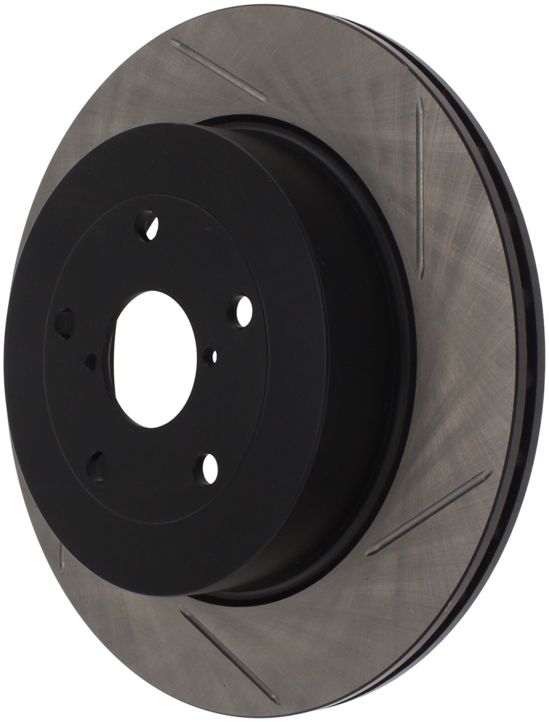Enhance your vehicle’s braking performance with the StopTech Power Slot 05-07 Subaru Impreza Rear Right Slotted Rotor. Designed as a direct replacement for factory brake discs, this rotor combines durability with improved stopping power, providing a noticeable upgrade over stock components. The rotor features a one-piece construction with a black e-coating that offers superior corrosion resistance, ensuring long-lasting performance even in harsh driving conditions. Its advanced metallurgy, which includes added molybdenum and chromium, offers enhanced crack resistance, quieter operation, and better thermal stress management. This makes it especially effective with high-friction European style brake pad compounds.