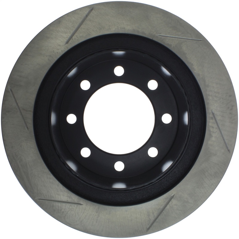 Enhance your Dodge Ram’s braking performance with the StopTech Power Slot 126.67062SL slotted brake rotor. Designed as a premium direct replacement for factory brake discs, this rotor features a one-piece construction that ensures durability and reliable performance. The unique slotting pattern aids in heat dissipation and brake dust removal, which helps prevent glazing of your brake pads and improves both wet and dry braking response. Its sleek black e-coating offers excellent corrosion resistance, maintaining the rotor’s appearance and functionality over time without sacrificing performance. The high-carbon metallurgy, often supplemented with Molybdenum and Chromium, provides increased resistance to cracking and thermal stress, making this rotor suitable for demanding driving conditions and heavy-duty applications. Ideal for higher friction European-style brake pad compounds, the rotor’s design enhances initial bite and overall braking responsiveness. Its double disk ground surface ensures a consistent friction surface, contributing to smoother operation and quieter braking. The directional curve vane design on select applications improves airflow and cooling, extending rotor life and reducing brake fade during prolonged use. Additional features include slots that evacuate gases, dust, and heat efficiently, along with a cryogenic treatment that reduces residual stress for long-term durability. This rotor is a perfect OEM replacement for 2006-2008 Dodge Ram 1500, 2006-2008 Ram 2500, and 2007-2008 Ram 3500 models, providing a combination of performance, longevity, and aesthetic appeal for your truck.