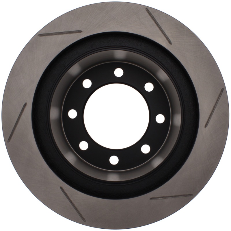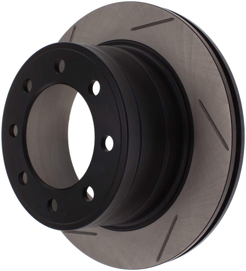 Upgrade your Dodge Ram’s braking system with the StopTech Power Slot 126.67062SR rear right slotted rotor, designed specifically for models from 2006 to 2008. These high-performance, one-piece rotors are direct replacements for stock brake discs, providing a combination of enhanced braking capability and aesthetic appeal behind your wheels. The unique slotting pattern improves heat dissipation and brake dust removal, reducing the risk of rotor glazing and delivering increased initial bite and more consistent braking performance in both wet and dry conditions. The black e-coating offers excellent corrosion protection, ensuring durability and a clean look over time, while the high carbon metallurgy contributes to quieter operation, increased crack resistance, and overall longevity of the rotor. Built with advanced metallurgy that includes Molybdenum and Chromium, these rotors are especially effective when paired with higher friction European style brake pads, reducing pad squeal and enhancing braking response. The double disk ground surface ensures a consistent friction surface, and the directional curve vane design (on selected applications) aids in thermal management, further improving brake performance during demanding driving conditions. Additionally, the slots help evacuate gases, dust, and heat, maintaining optimal contact between pad and rotor for improved safety and control. These rotors are a direct replacement for OEM parts, making installation straightforward and hassle-free for compatible Dodge Ram models. Whether you’re looking for improved stopping power, better resistance to thermal stress, or an upgrade that combines performance with durability, the StopTech Power Slot rotor is an ideal choice for serious drivers seeking reliable braking performance from their truck.