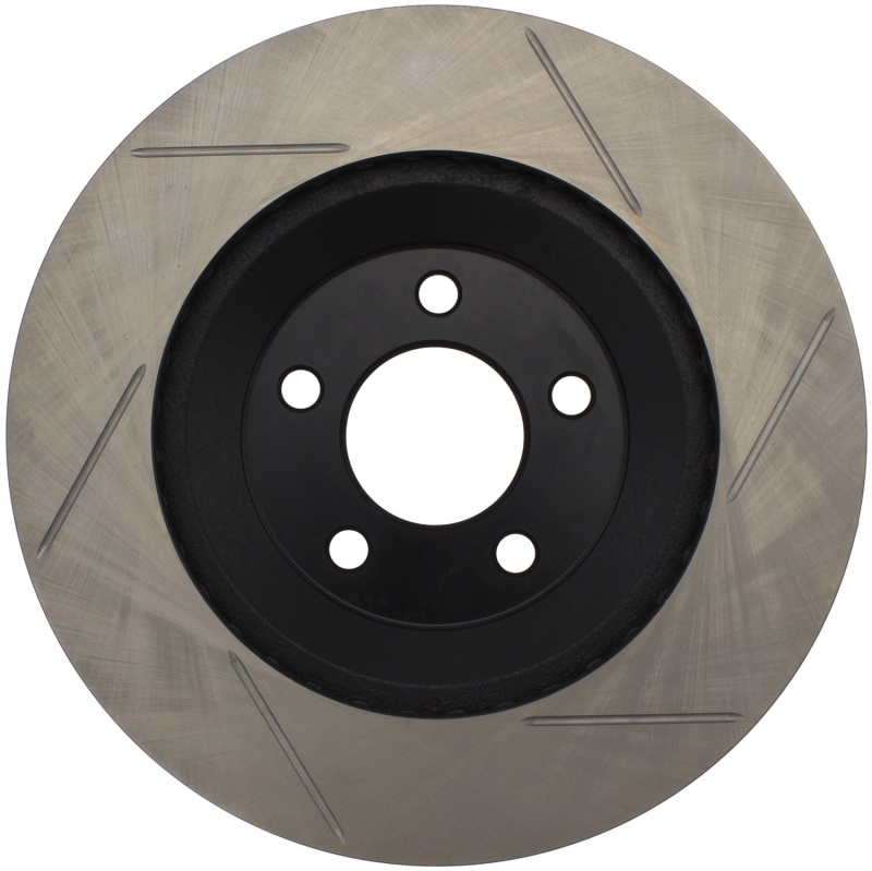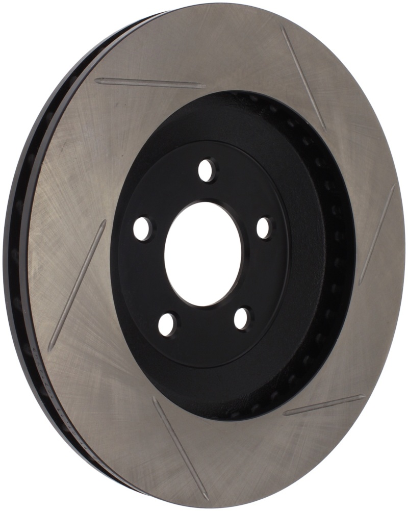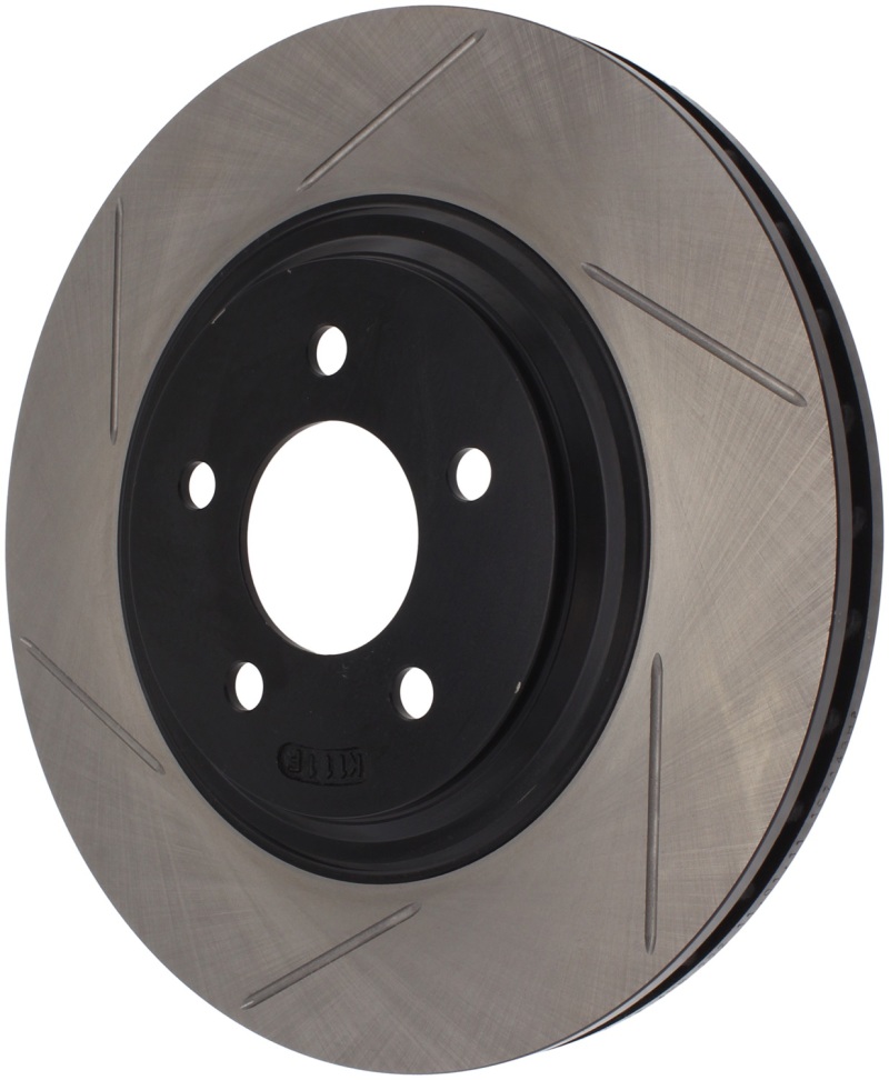 Upgrade your Ford Mustang’s braking system with the StopTech Power Slot front right slotted rotor, designed to deliver superior stopping power and enhanced durability. These high-performance, one-piece rotors are a direct replacement for your factory discs, perfectly fitting 1994-2004 Mustang models. The unique slotting design aids in heat dissipation and brake dust removal, preventing glazing and maintaining optimal brake pad contact for improved responsiveness. The black e-coating provides excellent corrosion protection, ensuring long-lasting performance even in harsh conditions. Made with advanced high-carbon metallurgy, these rotors offer quieter operation, better crack resistance, and increased overall performance for spirited driving or daily use.