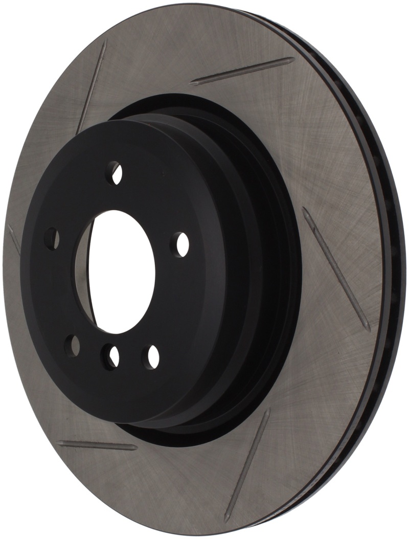 Upgrade your BMW’s braking system with the StopTech Power Slot rear right slotted rotor, designed specifically for models including the BMW 330i, 335i, 335d, 335is, and X1 from 2006 to 2015. Crafted as a single-piece direct replacement, this rotor enhances braking performance while maintaining a sleek appearance behind your wheels. The unique slotting pattern aids in heat dissipation, brake dust removal, and prevents pad glazing, resulting in improved bite and consistent braking in both wet and dry conditions. The black e-coating provides robust protection against corrosion, ensuring longevity and reliability. Featuring high carbon metallurgy, this rotor offers quieter operation, increased crack resistance, and better overall durability, making it a reliable upgrade for spirited driving or daily use.With advanced metallurgy that significantly reduces brake pad squeal, the StopTech Power Slot rotor is especially compatible with higher friction European-style brake pads. The slotting enhances initial bite and wet weather response, while the directional curve vane designs on select applications improve cooling efficiency. Additional features include cryogenic treatment to relieve residual stresses, double ground surfaces for consistent friction, and slots for evacuating gasses, dust, and heat effectively. The rotor’s construction emphasizes crack resistance and thermal stress durability, providing a dependable performance upgrade that closely matches OE specifications. Easy to install as a direct OE replacement, this rotor is ideal for drivers seeking improved braking performance, longevity, and aesthetic appeal in their BMW’s braking system.