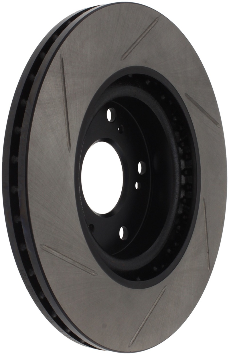 Upgrade your vehicle’s braking system with the StopTech Power Slot Slotted Front Left Rotor, designed specifically for select Honda Civic and Acura models from 2002 to 2015. Crafted with advanced high-carbon metallurgy and finished with a durable black e-coating, this rotor offers superior corrosion resistance and long-lasting performance. Its one-piece design provides a direct replacement for factory brake discs, ensuring easy installation and reliable compatibility. The unique slotting enhances heat dissipation and brake dust removal, which helps prevent pad glazing and maintains optimal pad contact for improved braking response under both dry and wet conditions. These features contribute to increased initial bite, better wet-weather braking, and a more aggressive braking feel overall.