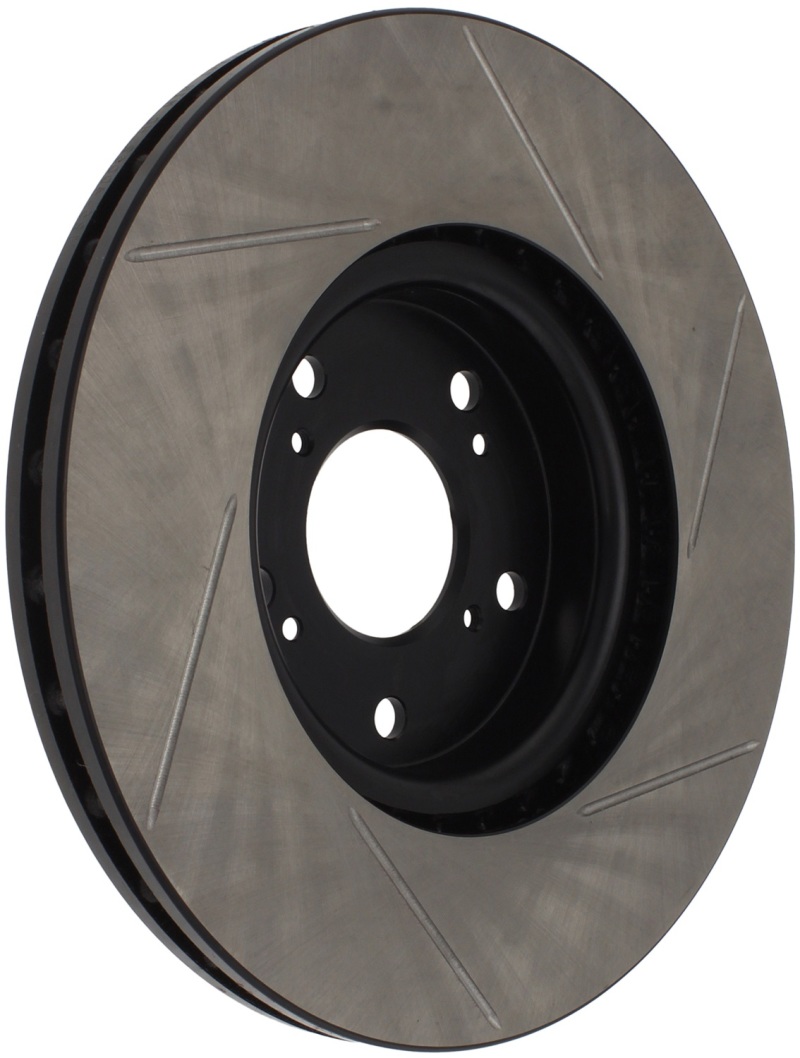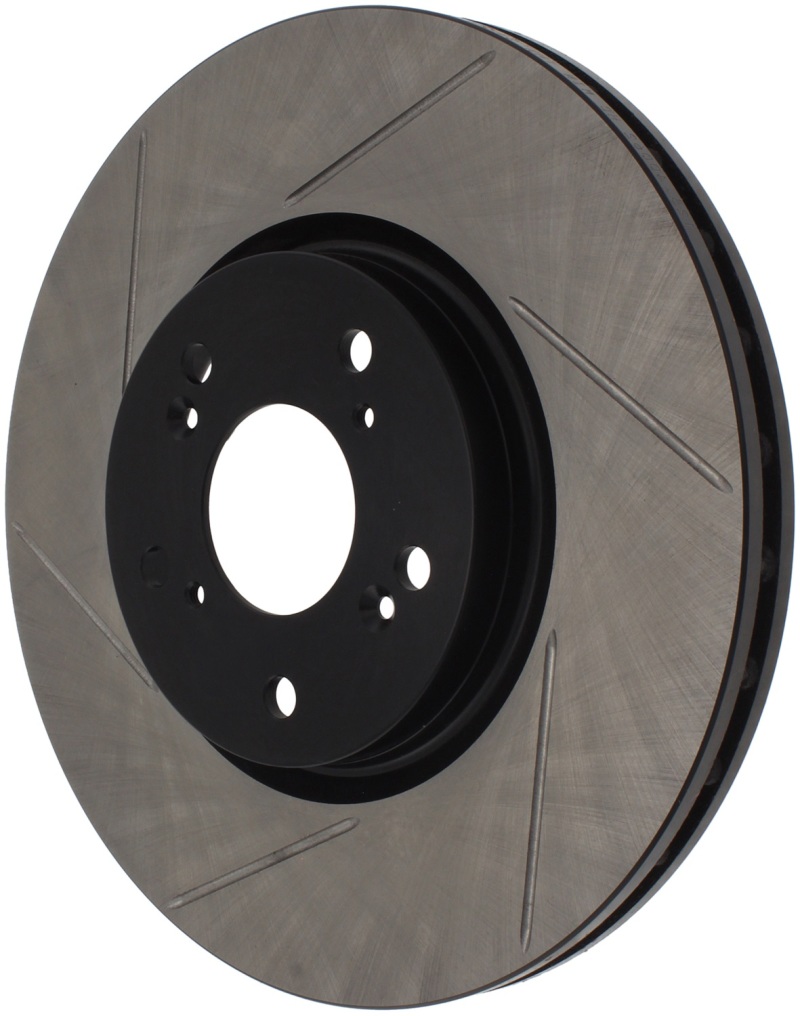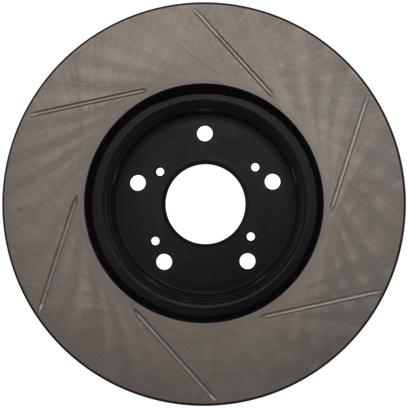 Upgrade your 2004-2008 Acura TL with the StopTech Power Slot Slotted Front Right Rotor, designed specifically for models equipped with Brembo calipers. These high-performance, one-piece rotors are direct replacements for factory discs, offering a distinctive look behind your wheels along with significantly enhanced braking capabilities. The unique slotting pattern aids in the rapid dispersal of heat, brake dust, and gases, helping to prevent pad glazing and ensuring reliable contact and responsiveness during intense braking conditions. The black e-coating provides excellent corrosion resistance, maintaining both the appearance and integrity of the rotor over time. Constructed with high carbon metallurgy, these rotors deliver quieter operation, better crack resistance, and increased durability, even under demanding driving scenarios. The advanced metallurgy and cryogenic treatment further reduce residual stresses, resulting in a more consistent and reliable braking experience. These rotors are especially effective with high-friction European-style brake pad compounds, making them suitable for spirited driving or track use. Featuring slots that help evacuate gasses, dust, and heat, they improve initial bite and wet weather response, ensuring optimal braking performance in various conditions. The design incorporates directional curve vane patterns on selected applications, enhancing airflow for better thermal management. As a direct OE replacement, these rotors are easy to install and provide a significant upgrade over stock components, combining improved looks with superior stopping power for your Acura TL.
