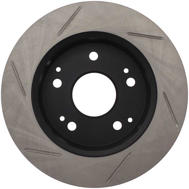Upgrade your vehicle’s braking system with the StopTech Power Slot Slotted Rear Left Rotor, designed as a direct replacement for the original equipment on select Acura and Honda models. Crafted from high-carbon metallurgy and featuring a durable black e-coating, this rotor offers superior resistance to corrosion, cracking, and thermal stress, ensuring long-lasting performance. The advanced construction reduces pad squeal and enhances braking response, especially when paired with high-friction European-style brake pads. Its unique slotting design promotes efficient heat dissipation, brake dust removal, and gas evacuation, leading to improved wet and dry braking performance in demanding driving conditions. The double disk ground surface provides consistent friction for confident stops, while the directional curve vane design on certain applications optimizes airflow and cooling within the brake assembly. This rotor is cryogenically treated to relieve residual stresses, further increasing durability and crack resistance, making it suitable for spirited driving or daily use. Designed to seamlessly fit 2001 Acura Integra, 2002 Honda Accord, and other compatible models from 1997 to 2006, this rotor ensures a straightforward installation as a true OE replacement. Add enhanced stopping power and a sleek appearance to your vehicle with the StopTech Power Slot Rotor, a reliable choice for performance-minded drivers seeking both form and function.