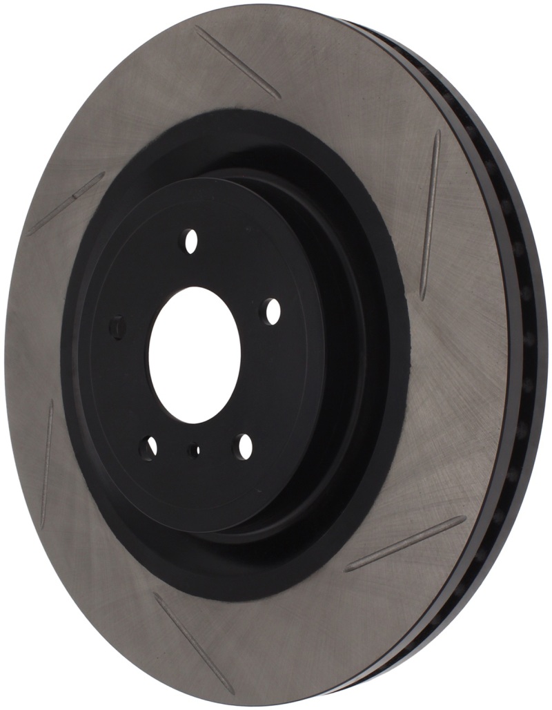 Upgrade your vehicle’s braking system with the StopTech Power Slot Sport Slotted Front Left Rotor, designed specifically for Nissan 370Z and Infiniti G37 models. Crafted with advanced metallurgy, this rotor features a high carbon content that enhances durability and provides quieter operation while resisting cracking caused by thermal stress. The black e-coating offers excellent corrosion protection, ensuring the rotor maintains its appearance and performance over time.