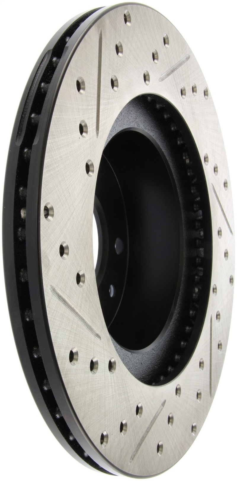 Upgrade your Mazda RX-7 braking system with the StopTech Slotted & Drilled Sport Brake Rotor, designed specifically for 1993 to 1995 models. Crafted as a one-piece direct replacement, this rotor enhances both the aesthetic appeal and the braking performance of your vehicle. With a black e-coating finish, it offers superior protection against corrosion, ensuring durability even in harsh driving conditions. The high carbon metallurgy used in most applications provides quieter operation, increased crack resistance, and improved heat dissipation. Built to withstand thermal stress, this rotor helps prevent warping and cracking, making it a reliable choice for spirited driving and everyday use.