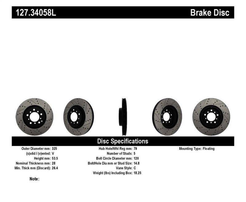 Upgrade your BMW M3 with the StopTech Slotted & Drilled Sport Brake Rotor, designed specifically for models from 2001 to 2006. Crafted as a one-piece direct replacement, this rotor enhances braking performance while maintaining an attractive appearance behind your wheels. The unique cross-drilling and slotting aid in heat dissipation, brake dust removal, and gas evacuation, resulting in improved braking response in both wet and dry conditions. The black e-coating provides excellent corrosion resistance, ensuring durability even in harsh environments. Built with high carbon metallurgy, this rotor offers quieter operation, superior crack resistance, and increased longevity, making it a reliable choice for performance-minded drivers.