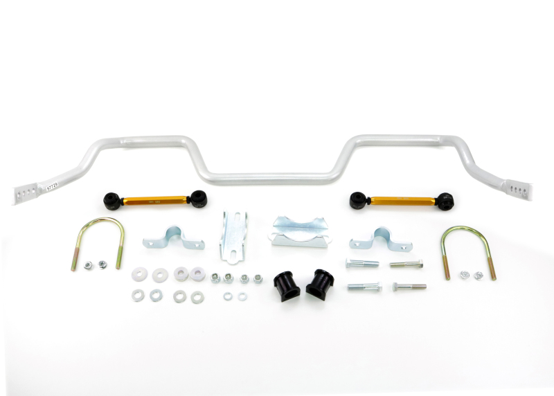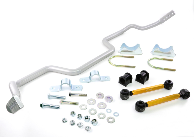 Enhance your Ford Mustang’s handling and cornering performance with the Whiteline 27mm heavy-duty adjustable sway bar, designed specifically for 2011-2013 models including Shelby GT and GT500 variants. Crafted from high-quality alloy and featuring multi-point adjustment, this sway bar allows you to fine-tune your vehicle’s handling characteristics to suit your driving style and conditions. Its 27mm diameter provides a significant upgrade over stock components, reducing body roll and distributing lateral loads more evenly across all tires for improved grip and stability during aggressive turns or spirited driving. The sway bar’s design eliminates flex associated with factory components, resulting in increased rigidity, responsiveness, and overall vehicle control. The included synthetic elastomer link bushings boast resistance to oil, grease, ozone, and weathering, with PTFE lining that ensures low friction and eliminates the need for lubrication. Protective plating and powder coating on all metal parts provide exceptional durability and corrosion resistance, allowing for years of reliable performance even in challenging environments. The multi-point adjustment feature offers precise control over handling dynamics, enabling you to tailor your vehicle’s response for daily driving or track use. Installation is straightforward with detailed instructions and on-car length adjustment up to 1 inch (25mm), ensuring optimal fitment and performance. Designed for enthusiasts seeking the best dollar-for-dollar improvement in handling, the Whiteline sway bar enhances safety, tire wear, and driving confidence without compromising ride comfort.