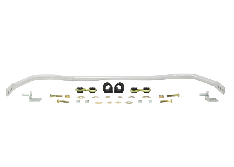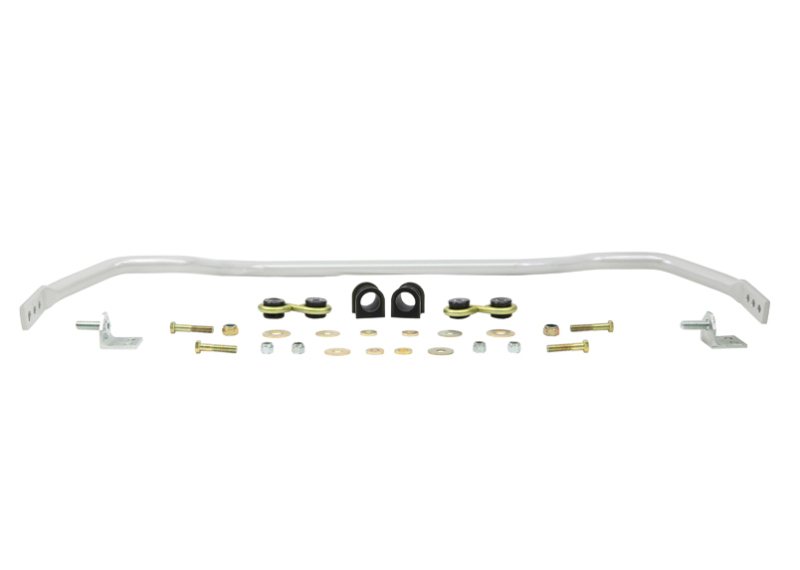 Improve your vehicle’s handling and cornering performance with the Whiteline 27mm heavy duty adjustable sway bar, model BNF42Z. Designed to reduce body roll and sway during sharp turns, this sway bar helps distribute lateral loads evenly across your tires, resulting in enhanced grip and stability. Its adjustable 3-point design allows you to fine-tune vehicle characteristics to match your driving style or conditions, making it an excellent upgrade for both daily driving and spirited cornering. Constructed from high-quality steel and featuring synthetic elastomer link bushings, the sway bar offers durability and resistance to elements such as oil, grease, ozone, and weathering, ensuring long-lasting performance.