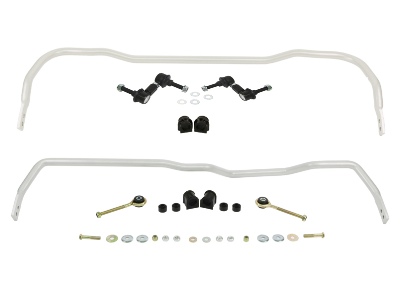 Enhance your Nissan Skyline R32 GTR’s handling and cornering stability with the Whiteline BNK009 sway bar kit. Designed to provide optimal balance and precise tuning, this kit features a 22-inch front sway bar with adjustable two-point mounting and a 24-inch rear sway bar, also with adjustable two-point mounting. The kit includes all necessary components such as front and rear sway bar links, bushings, and mounting hardware, making installation straightforward and ensuring a perfect fit. These sway bars are engineered to reduce body roll and sway during aggressive cornering, improving overall vehicle responsiveness and driver confidence. The high-quality synthetic elastomer used in the sway bar mounts incorporates internal bore knurling and grease retention lips to ensure maximum lubrication and durability, maintaining peak performance over time. The protective powder coating provides a tough, corrosion-resistant finish that withstands harsh driving conditions, extending the lifespan of the product. Each kit is supplied with extreme pressure molybdenum disulphide (LM) based grease, which helps to prolong part life and maintain smooth operation. Whether you’re upgrading for street performance or track use, the Whiteline BNK009 sway bar kit offers a significant improvement in handling dynamics for your Nissan Skyline R32 GTR.