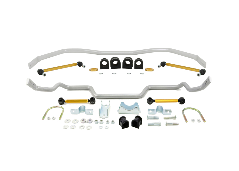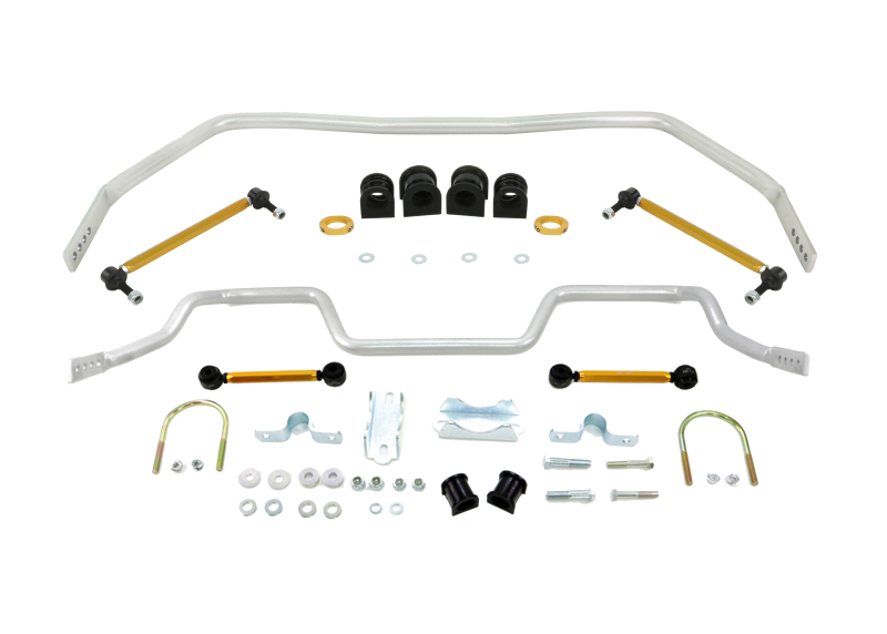 Upgrade your Ford Mustang’s handling with the Whiteline BFK005 sway bar kit, designed to enhance stability and reduce body roll during cornering. Featuring a 33mm four-point adjustable front sway bar and a 27mm four-point adjustable rear sway bar, this kit provides precise tuning options for personalized vehicle performance. Manufactured from high-quality alloy with anodized finishes, the components are built for durability and resistance to corrosion, ensuring long-lasting performance in demanding conditions. The kit includes high-quality sway bar links and mounting accessories with advanced synthetic elastomer bushings that resist oil, grease, ozone, and weathering, minimizing maintenance and maximizing lifespan. The multi-point adjustment system allows drivers to fine-tune vehicle dynamics, optimizing handling based on driving style or road conditions. Forged ends and heavy-duty steel ball joints ensure maximum strength at critical mounting points, while lateral locks prevent sway bar shifting during aggressive maneuvers. Installation is straightforward with the included detailed guide, and the design eliminates sway bar preload to facilitate precise adjustments. This product is ideal for enthusiasts seeking to improve their Mustang’s cornering capabilities without sacrificing ride comfort, making it a valuable upgrade for both street and track use.