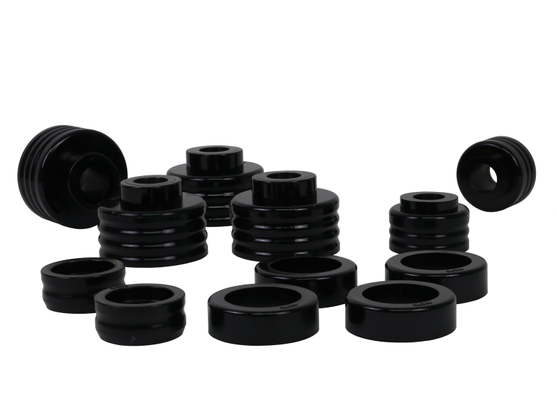 Upgrade your Ford F-350 Super Duty with the Whiteline W93560 Body Mount Bushing Set designed specifically for models from 1999 to 2004. This kit replaces worn OE body mounts with high-quality bushings that provide enhanced durability and stability. Featuring protective plating on all metal components, the bushings are much tougher than conventional paint, offering superior resistance to corrosion and environmental wear. This ensures your vehicle maintains proper alignment and reduces body movement over time, even under demanding conditions. The set is engineered with a bonded design that optimizes strength, making it suitable for high load-bearing applications and ensuring longevity. The Whiteline formulation technology further enhances the bushings’ resistance to oil, grease, ozone, and weathering, providing reliable performance in various driving environments. The installation process is simplified with an included detailed guide, making it accessible for DIY enthusiasts and professional installers alike. Its design reduces the need for specialized skills, tools, or equipment, allowing for a straightforward upgrade that restores vehicle handling and comfort. Constructed with durability and ease of installation in mind, the Whiteline Body Mount Bushing Set is an essential upgrade for maintaining the structural integrity and ride quality of your Ford F-350 Super Duty.