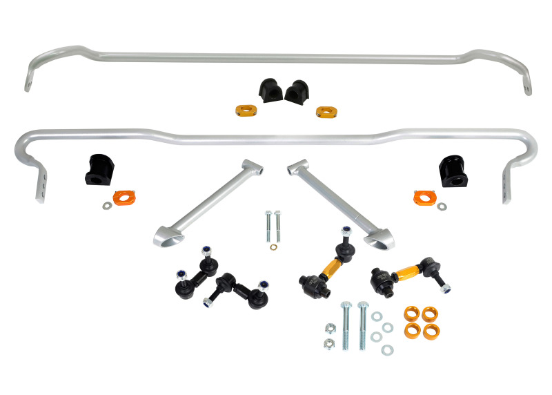 Enhance your Subaru Impreza’s handling and stability with the Whiteline BSK011 sway bar kit, engineered to deliver precise control and improved performance. This kit features a 22mm 2-point adjustable front sway bar and a 22mm 3-point adjustable rear sway bar, allowing for customizable tuning to suit your driving style and conditions. Crafted from high-quality alloy and equipped with premium synthetic elastomer bushings, the kit ensures maximum durability, resistance to oil, grease, ozone, and weathering, and long-lasting performance. The sway bars are coated with protective E-Coat and powder finishes, making them resistant to corrosion and capable of withstanding tough driving environments. Heavy-duty forged ends and steel ball joints provide robust mounting points and allow for versatile angular adjustments, facilitating easier installation and optimal performance during aggressive cornering. The adjustable design eliminates sway bar preload during installation and provides up to 25mm of on-car length adjustment, giving you the ability to fine-tune your vehicle’s handling characteristics.
