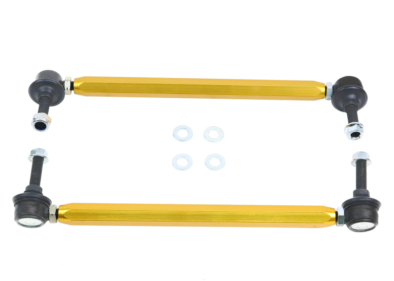 Enhance your vehicle’s handling and stability with the Whiteline KLC140-295 universal sway bar link kit, designed for Mercedes-Benz C-Class models from 2009 to 2011. These high-strength, lightweight links are engineered to eliminate flex associated with factory components, providing increased rigidity and responsiveness during lane changes and initial turns. The adjustable feature allows for on-car length adjustments of up to 1 inch (25mm), ensuring precise fitment and optimal sway bar performance without preload issues. Constructed from premium anodized alloy, the links resist corrosion and wear while maintaining a sleek appearance. Heavy-duty steel ball joints at each end offer maximum durability and facilitate easy rotation to achieve the best angular fit for your specific vehicle setup. An installation guide is included, providing detailed instructions to help you achieve proper alignment and maximum performance. These sway bar links are a vital upgrade for enthusiasts seeking improved grip, handling, and overall driving confidence, especially during aggressive maneuvers or cornering. Designed for ease of installation and long-lasting performance, the Whiteline KLC140-295 kit is a reliable choice for those aiming to optimize their vehicle’s suspension dynamics and driving experience.