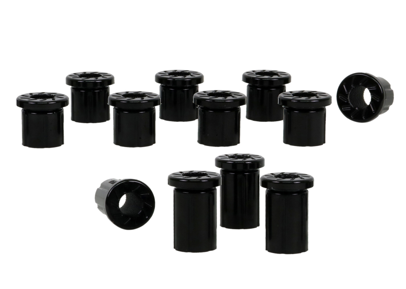 Ensure optimal performance and durability for your Toyota pickup or 4Runner with the Whiteline W73466 leaf spring and shackle bushing kit. Designed specifically for vehicles from 1980 to 1985, this kit addresses the common wear issues caused by high mileage and heavy loads that accelerate rubber bushing deterioration. Whiteline’s signature black bushings are crafted from a tough synthetic elastomer formulation that offers exceptional abrasion resistance, high load capacity, and flexibility. These features make them ideal for demanding applications such as 4WDs, utility vehicles, and towing setups, where durability is essential. The bushings provide increased tensile strength and are resistant to chemicals like oil and grease, as well as environmental factors such as ozone and weathering. This resistance ensures a longer service life and maintains vehicle handling characteristics over time. The kit is engineered with advanced synthetic elastomer technology, which enhances its resistance to common automotive contaminants and environmental stressors, ensuring reliable performance in diverse conditions. Proper installation of this bushing kit will help improve ride comfort, reduce vibrations, and maintain proper alignment of your vehicle’s suspension components. Whether you’re restoring a classic Toyota pickup or maintaining a daily driver, the Whiteline W73466 kit offers a high-quality solution that combines durability, flexibility, and resistance to harsh conditions. This product is suitable for professional installation or qualified DIY enthusiasts seeking to restore or upgrade their vehicle’s suspension system.