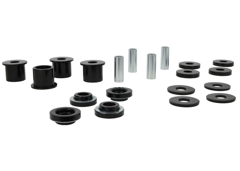 - Replaces factory bushings in the rear subframe for improved stability