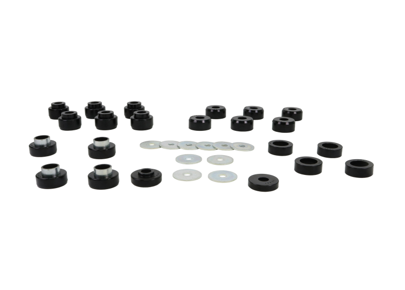 The Whiteline W93541 Body Mount Bushing Set is engineered to provide superior durability and performance for Jeep Wranglers manufactured between 1987 and 1995. Crafted with tough materials, these bushings offer outstanding abrasion resistance and high load bearing capacity, making them ideal for off-road adventures, towing, and heavy-duty use. The protective plating on all metal components acts as a hard skin, significantly enhancing corrosion resistance and ensuring long-lasting service life even in harsh environments. The design emphasizes ease of installation, reducing the need for specialized skills, tools, or equipment, which streamlines the maintenance process for both professional mechanics and DIY enthusiasts. Specially bonded for optimized strength, these bushings are suitable for high load applications, providing stability and improved handling for your vehicle. Internal grease reservoirs ensure continual self-lubrication, reducing friction and wear over time, which extends the lifespan of the components. Each set includes an installation guide with detailed instructions, facilitating a straightforward upgrade process. Supplied with high-pressure molybdenum disulphide (LM) based grease, the bushings are primed for extended durability and reliable performance. Whiteline’s advanced formulation technology resists oil, grease, ozone, and weathering elements, maintaining their integrity in demanding conditions. This set is perfect for restoring ride quality, reducing vibrations, and enhancing vehicle control, especially when used for off-road, towing, or heavy-duty applications. Designed to fit specific Jeep Wrangler models from 1988 through 1995, these bushings ensure a precise and secure fit, making them an excellent choice for vehicle maintenance and performance upgrades.