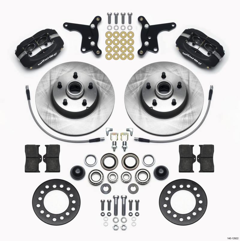 Upgrade your classic Ford vehicle from 1954 to 1956 with the Wilwood Forged Dynalite Front Disc Brake Kit, Part No. 140-12922. Designed specifically for Ford models including the Thunderbird, this kit provides a reliable and high-performance disc brake solution that fits OEM Drum spindles without requiring modifications. Featuring an 11.28-inch diameter by 1.00-inch thick rotor and a hub assembly, it offers improved stopping power while maintaining the original look and feel of your vintage vehicle. The kit is based on Wilwood’s renowned forged billet Dynalite calipers, ensuring durability and consistent performance for daily driving or show-quality restoration. It includes all necessary components, such as calipers, rotors, hub assembly, brackets, hardware, and line kit, making installation straightforward and hassle-free. The FDL one-piece kits are adaptable to both manual and power boost master cylinders, providing flexibility for various brake systems and driver preferences. With ample clearance inside popular 15-inch wheels, this kit ensures compatibility with your existing wheel setup, enhancing both safety and aesthetics. Designed for ease of installation and high performance, the Wilwood Dynalite front brake kit is an ideal upgrade for enthusiasts seeking to improve braking efficiency while preserving the classic appearance of their vintage Ford.