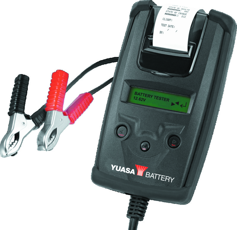 The Yuasa Battery Digital Print Tester YUA00BTY01P is designed specifically for powersports batteries, providing quick and accurate assessments of battery health and charge status. This device utilizes advanced single load, dynamic resistance technology to minimize battery drain during testing, ensuring reliable results whether the battery is fully charged or discharged. Its user-friendly digital interface prints detailed test results and recommended actions, helping users make informed decisions about maintenance and replacements. The tester comes with two rolls of thermal printing paper, making it easy to keep records of each test for future reference. Encased in a durable heavy-duty plastic housing, the Yuasa Digital Battery Print Tester is built to withstand the rigors of workshop or field use, providing long-lasting performance.